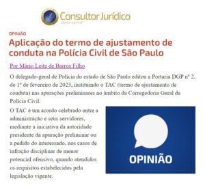 Consultor Jurídico – Aplicação do termo de ajustamento de conduta na Polícia Civil de São Paulo